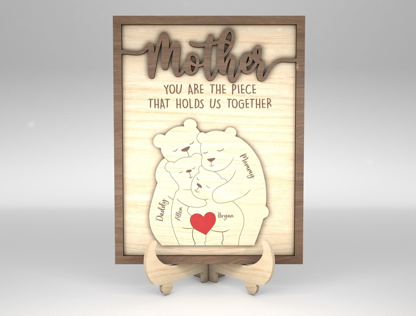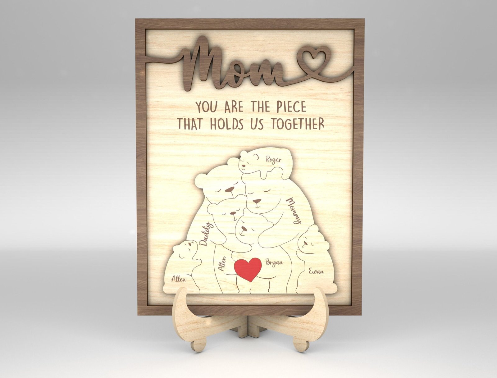 Capture the warmth of your family in a beautiful and customizable digital design with our Personalized Family Puzzle Sign SVG Bear. This downloadable SVG file is ideal for Cricut, Silhouette, and other cutting machines. Whether you’re creating a heartfelt gift, wall décor, or a keepsake sign, this puzzle-style bear layout lets you add individual names, making each piece of the bear represent a beloved family member. Perfect for Mother’s Day, Father’s Day, housewarming gifts, or just because—you’ll be turning pixels into precious memories in minutes.